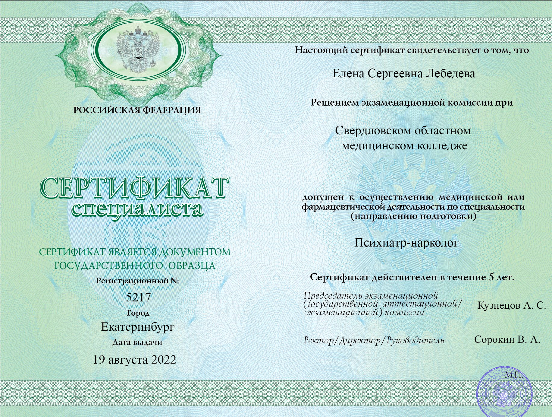 Елена Сергеевна Лебедева врач нарколог клиники доктора Стукаловой в Варениковской